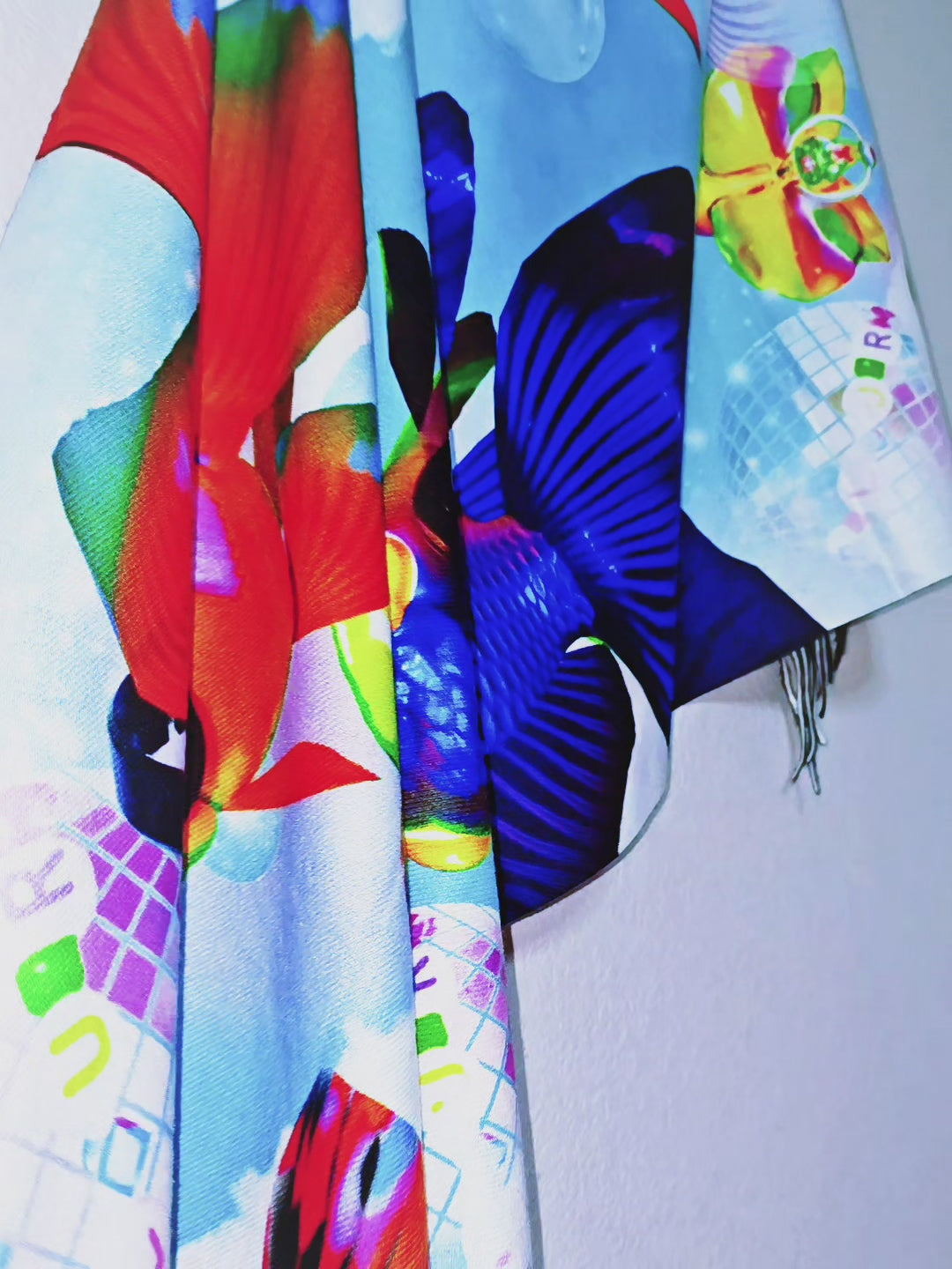 🫧💿 @liyakitten × @archfiendco artists collab: Oranda Goldfish Disco fringed pash - A piece built on hopes for world unity, amplifying inclusivity as an immigrant 🌏🫶🏻 ( First piece trailer for my new collection line! )